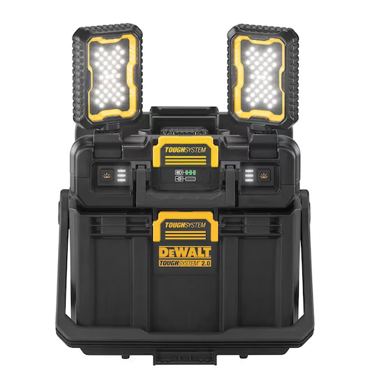Éclairez les aires de travail et gardez les outils essentiels à portée de main grâce à la lampe de travail réglable DEWALT TOUGHSYSTEM® 2.0 avec rangement. Alimentée par des batteries 20 V MAX*, cette solution d’éclairage modulaire est dotée de 2 lampes DEL à tête pivotante qui offrent jusqu’à 3 heures d’autonomie**. Comprenant un vaste espace de rangement, une poignée pliante intégrée et une conception durable, ce produit compatible avec TOUGHSYSTEM® offre la polyvalence requise pour les chantiers exigeants.