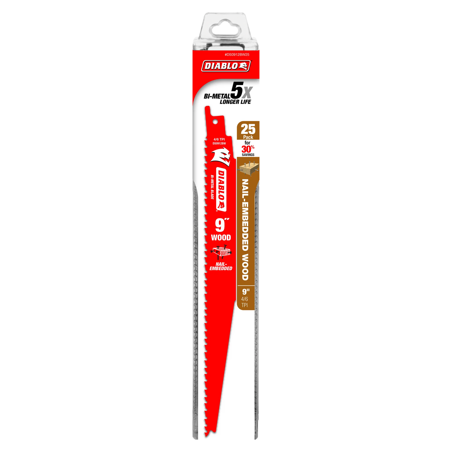 Lame de scie alternative bimétallique 9" 4/6TPI pour bois clouté