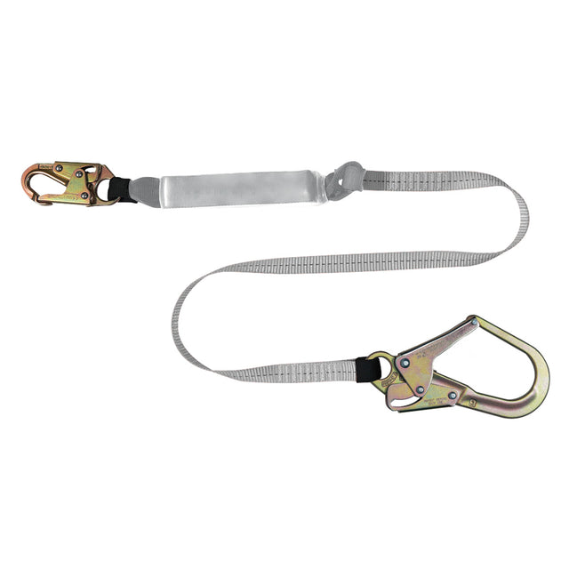 Longe fixe en polyester à une jambe avec absorbeur d'énergie, mousqueton et connecteurs pour crochet d'échafaudage - 1"