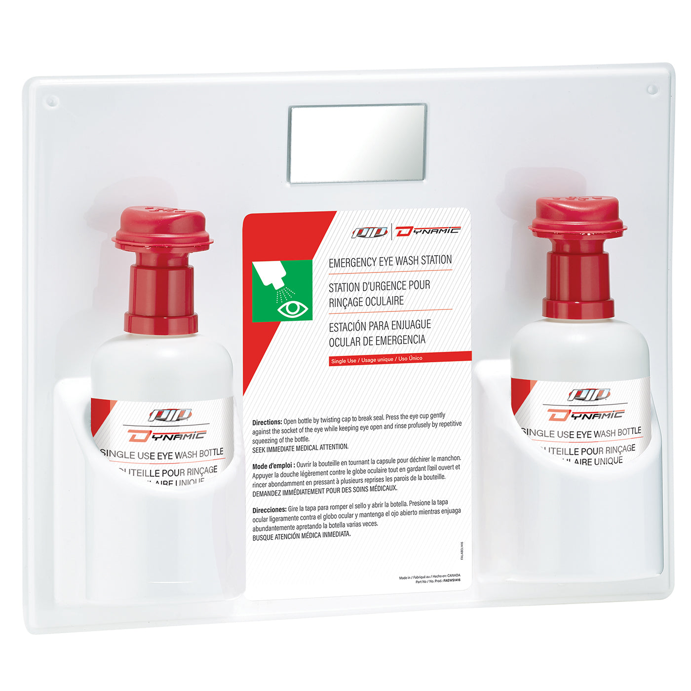 Station complète de lavage des yeux comprenant le panneau FAEWS1416 Plus (2) bouteilles de FAEW032SU avec œillère attachée (usage unique)