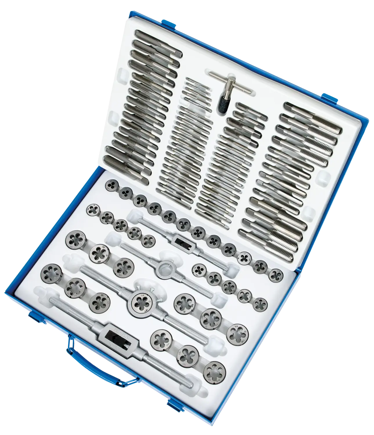 Jeu de tarauds et filières en alliage de première qualité de 110 pièces SAE/métrique. JET
