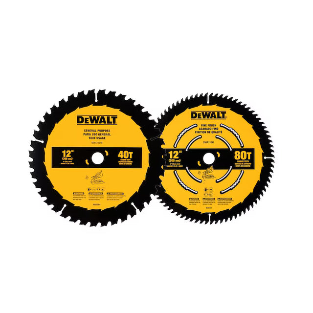 PAQUET DE 2 LAMES DE SCIE 12" 40 DENTS & 80 DENTS DEWALT DWA124080CMB