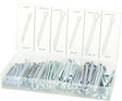 Packaged in a sturdy plastic storage case. Assortment contains: (50) 1/8" x 2". (30) 5/32" x 2-1/2". (20) 3/16" x 3". (20) 1/4" x 2". (16) 1/4" x 3". (8) 5/16" x 2-1/2".