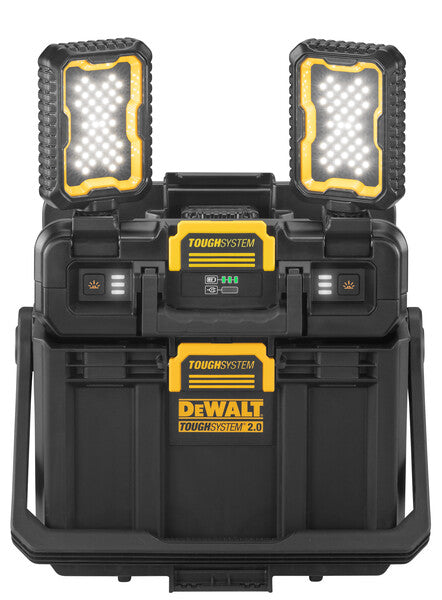 Illuminate work areas and keep essential tools close at hand with the DEWALT TOUGHSYSTEM® 2.0 Adjustable Work Light with Storage. Powered by 20V MAX* batteries, this modular lighting solution features two LED lights with pivoting heads that provide up to 3 hours of runtime**. Featuring ample storage, an integrated folding handle, and a durable design, this TOUGHSYSTEM®-compatible product offers the versatility needed for demanding jobsites.
