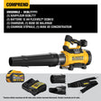 Tackle tough cleanups and blast through tough debris with the 60V MAX* Brushless High-Power Blower. This compact, foam-powered cordless blower delivers up to 78% quieter operation than a gas blower.†† Featuring optimized geometry that produces up to 760 CFM of air volume at 160 mph, this compact blower is equipped with a flat nozzle, air concentrator, and shoulder strap for added versatility across a wide range of applications.