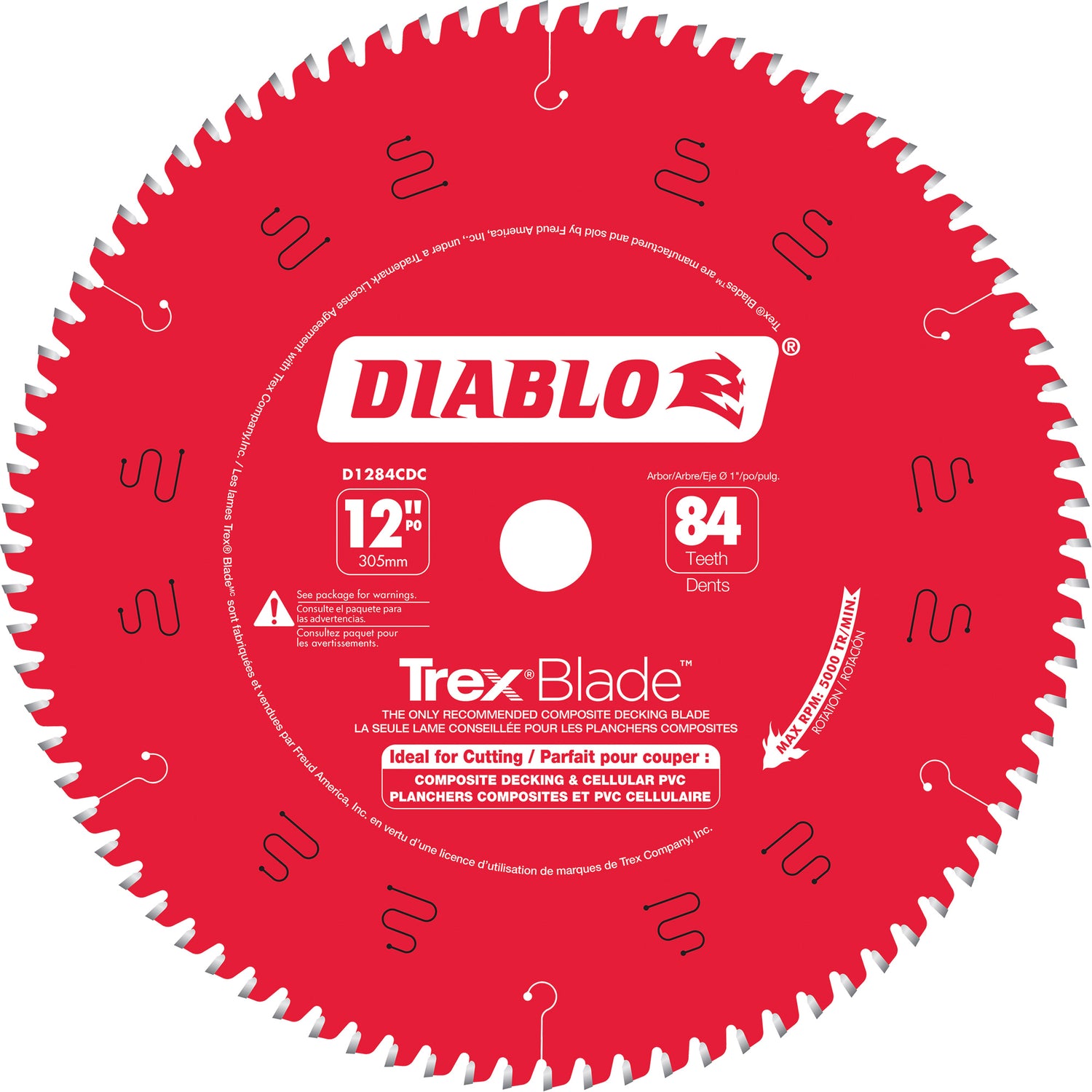 The Diablo TrexBlade™ saw blade is the only blade recommended by Trex Company for cutting its composite decking. These new blades deliver optimal performance and the highest quality finish, making them a must-have for both professionals and DIYers looking to create composite decking. The new Diablo saw blade line features a triple-ground tooth design, a Perma-SHIELD® non-stick coating, and a specific high-density TiCo™ carbide for more efficient, cleaner cuts with no drag marks, less tooth “gumming,” and longer life.