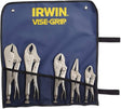 - L'ensemble comprend une mâchoire droite de 10", une mâchoire courbée de 10", une mâchoire courbée de 7" avec coupe-fil, une pince à bec long de 6" et une pince-étau à mâchoire courbée de 5"
