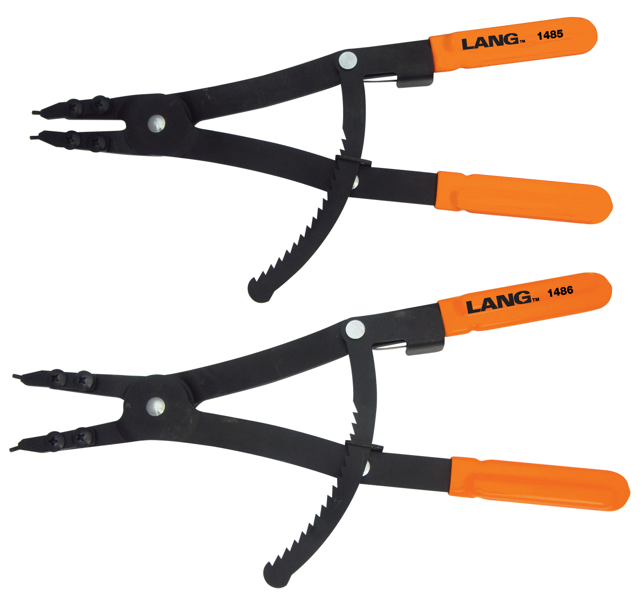 - Spring-loaded ratchet locking mechanism holds firmly against the tension of the snap ring
