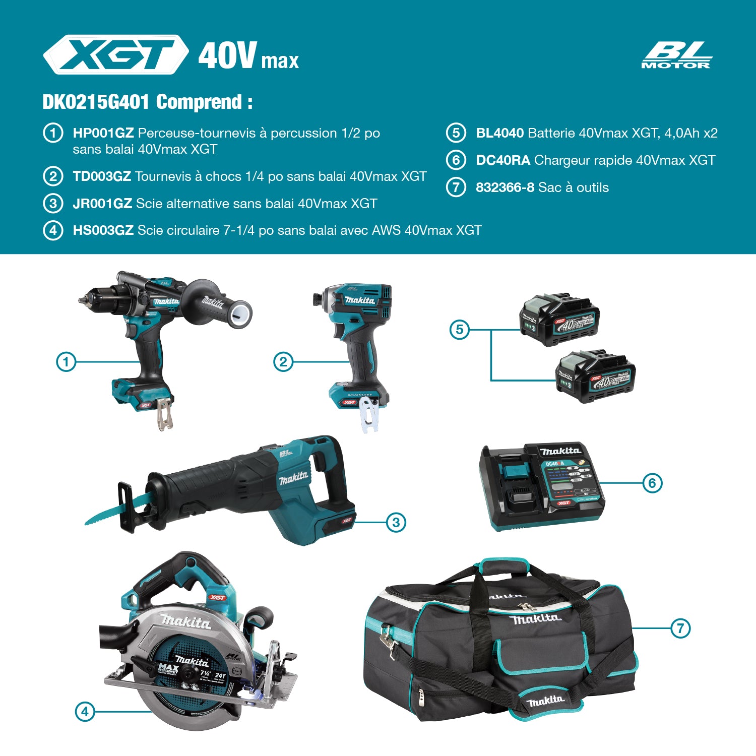 - Batterie XGT 40 V max, 4,0 Ah x2 (BL4040)