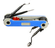 Cet ensemble d'outils innovant comprend quatre tiges pliables qui se verrouillent facilement en position pendant l'utilisation et se replient soigneusement dans la poignée pour une portabilité pratique.