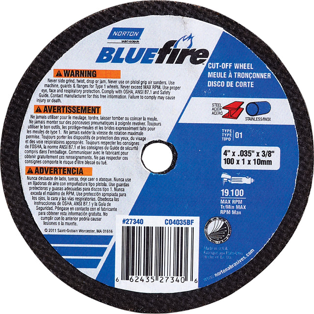 Meule a tronconner BlueFireMD, 3" x 1/16", Arbre de 3/8", Type 1, Oxyde d'aluminium, 25465 Tr/min