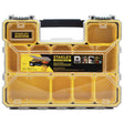 L'organiseur professionnel profond STANLEY® facilite l'organisation et l'accès à vos outils. Il est doté de loquets latéraux robustes permettant d'empiler plusieurs organiseurs en toute sécurité. Il dispose également de deux compartiments amovibles pour les petites pièces et accessoires. Son couvercle transparent, robuste et résistant aux chocs vous permet de visualiser facilement tout votre contenu, et sa conception unique verrouille tous les compartiments pour que tous vos objets restent en sécurité.