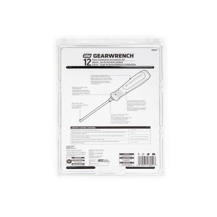• Comprend : tournevis à double matériaux PhillipsMD no 0 x 2-1/2", tournevis à double matériaux PhillipsMD no 1 x 3", tournevis à double matériaux PhillipsMD no 1 x 6", tournevis à double matériaux PhillipsMD no 2 x 1-1/2", tournevis à double matériaux PhillipsMD no 2 x 4", tournevis à double matériaux PhillipsMD no 3 x 6", tournevis d'ébéniste à double matériaux 3/16" X 6", tournevis à fente à double matériaux 1/4" x 1-1/2", tournevis à fente à double matériaux 5/16" x 6", tournevis à fente à double matériaux 3/8" x 8", tournevis à fente à double matériaux 1/4" x 4", tournevis à fente à double matériaux 1/4" x 6"