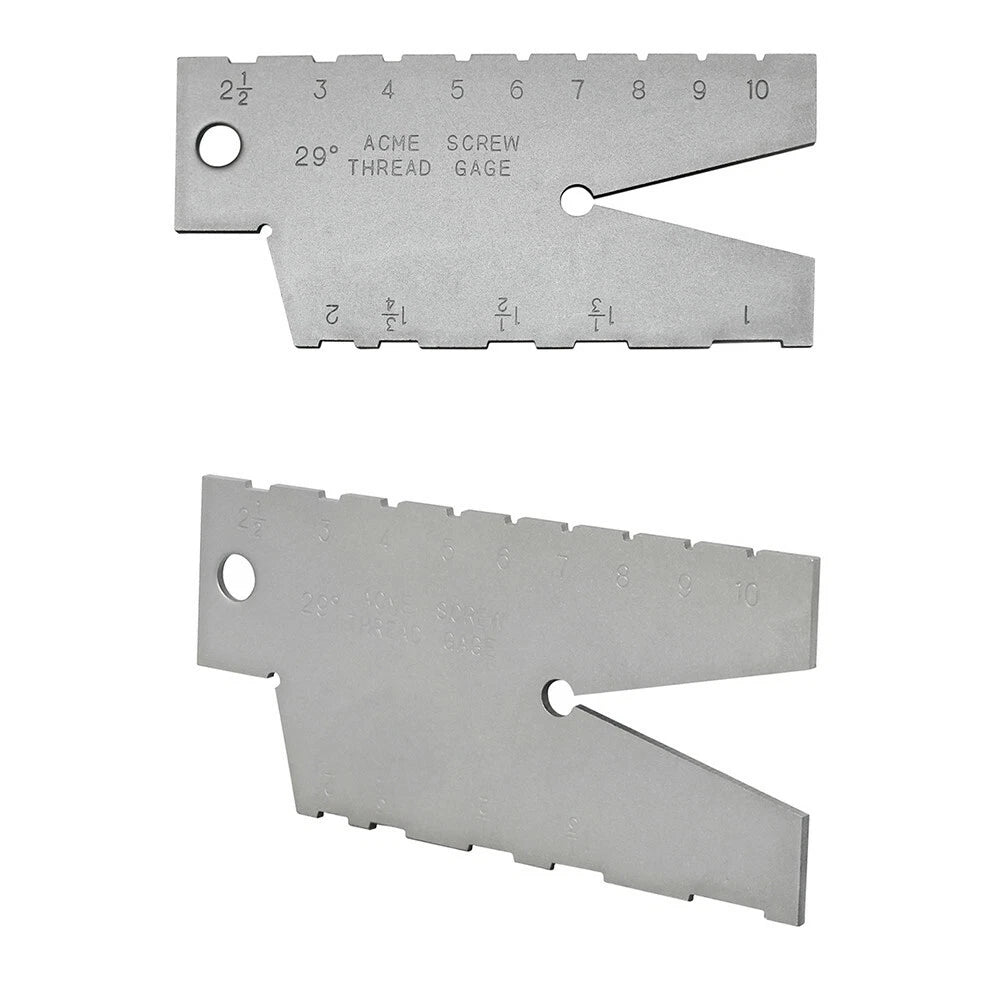 - Jauge de filetage trapézoïdale : (1", 1-1/3", 1-1/2", 1-3/4", 2" ; 2-1/2", 3", 4", 5", 6", 7", 8", 9" et 10")