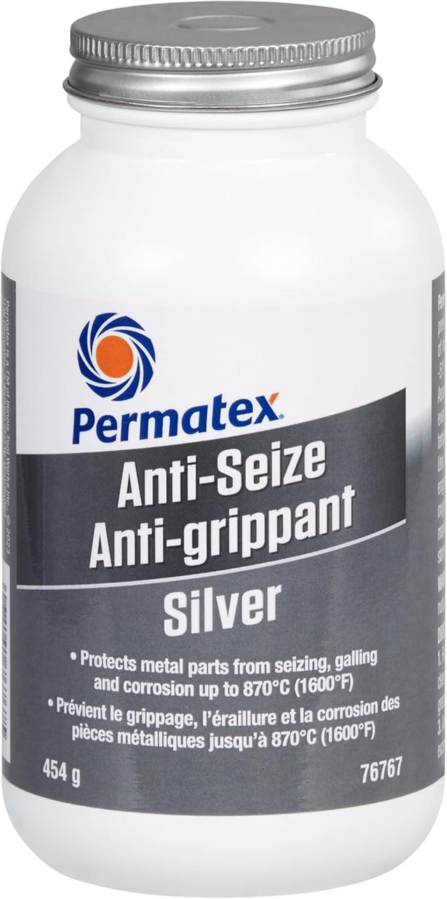 Permatex Silver Anti-Seize provides superior quality with a blend of micro-fine aluminum, copper, and graphite flakes suspended in a non-melting semi-synthetic grease carrier. Permatex Silver Anti-Seize creates a protective film on parts and assemblies, guarding against seizing, corrosion, rust, salt, galling, damage, and prolonged exposure to harsh elements. Anti-seize prevents seizing caused by extreme temperatures, galvanic corrosion, friction damage, and excessive torque. Permatex Silver Anti-Seize reduces friction during assembly, enhancing smooth operation, cutting down maintenance time, enabling easier disassembly, and improves reliability and lifespan of components. Performs in high-temperature conditions, ranging from -51°C to 870°C (-60°F to 1600°F), and meets or surpasses MIL-PRF-907E specifications.