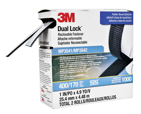 Attache refermable Dual LockMC, Auto-appariement, 4,9 vg x 1", Adhésif, Noir
