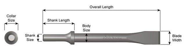 Les burins Ajax Rivet Gun sont fabriqués en acier allié de haute qualité. Ils sont proposés avec différents types de tiges et de pointes, et présentent différents degrés de dureté pour s'adapter à l'application spécifique. Cette catégorie de burins est utilisée pour la découpe, le grattage, le fendage et l'enfoncement du métal.