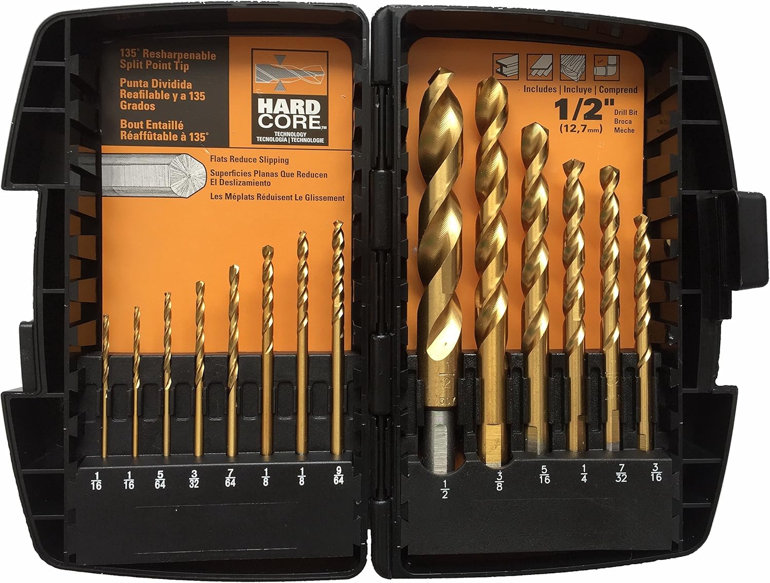 Le jeu de 14 forets en titane BOSTITCH BSA1S14TM est conçu pour le perçage du métal avec des perceuses-visseuses filaires ou sans fil. La technologie « hard core » assure durabilité et réduction des risques de casse, tandis que la pointe fendue limite les déplacements. Les méplats sur la tige empêchent le foret de glisser dans le mandrin. Diamètres : (2) 1/16", 5/64", 3/32", 7/64", (2) 1/8", 9/64", 5/32", 3/16", 7/32", 1/4", 5/16", 3/8". L'ensemble comprend : foret en titane : (2) forets en titane de 1/16", (2) forets en titane de 1/8", (1) foret en titane de 5/64", (1) foret en titane de 3/32", (1) foret en titane de 7/64", (1) foret en titane de 9/64", foret en titane de 3/16", (1) foret en titane de 7/32", (1) foret en titane de 1/4", (1) foret en titane de 5/16", (1) foret en titane de 3/8", (1) foret en titane de 1/2".