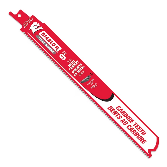 Lame de scie alternative Steel Demon™ 9" 12TPI à dents en carbure pour conduits métalliques fins